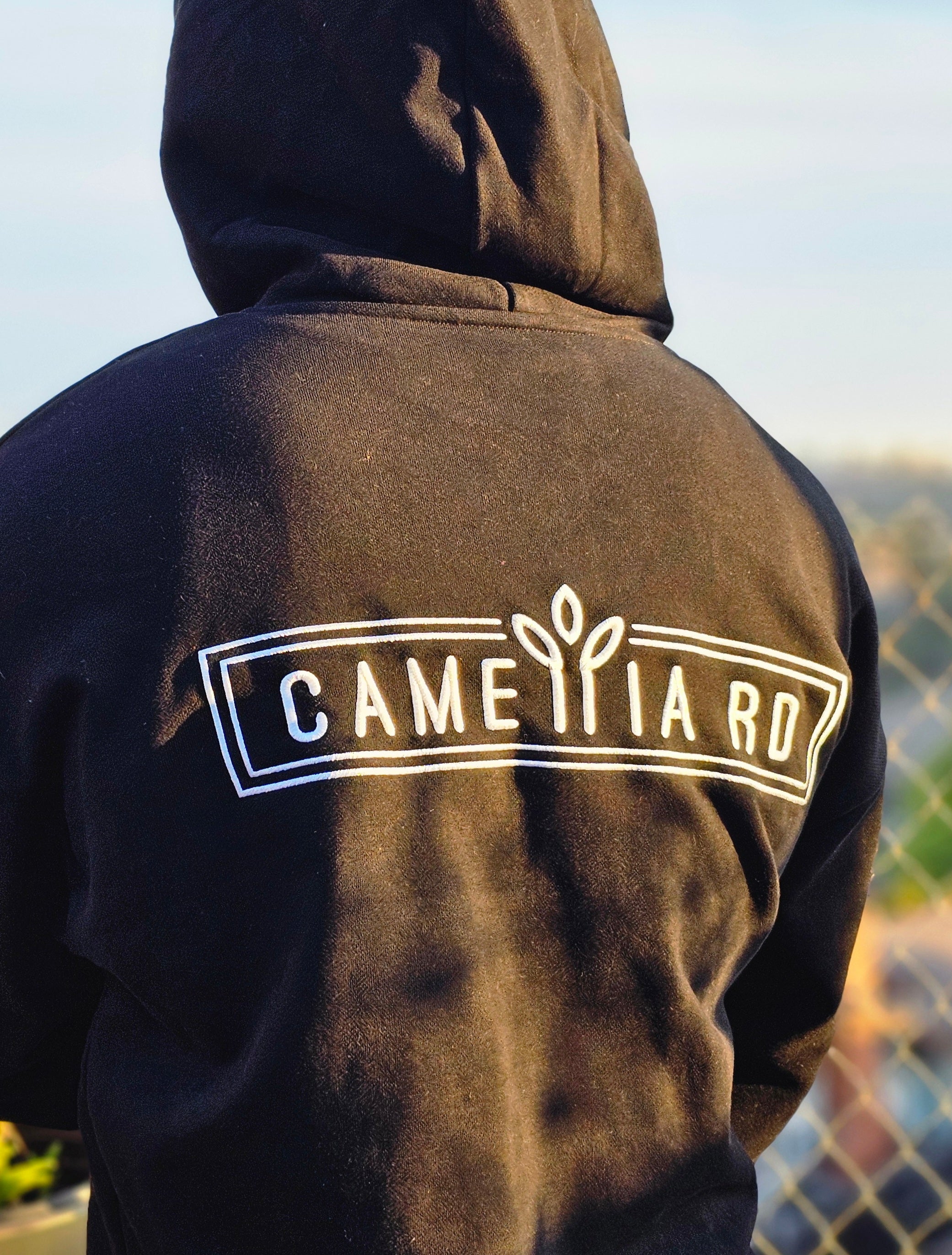 Get cozy in our Camellia Rd heavyweight hoodie.