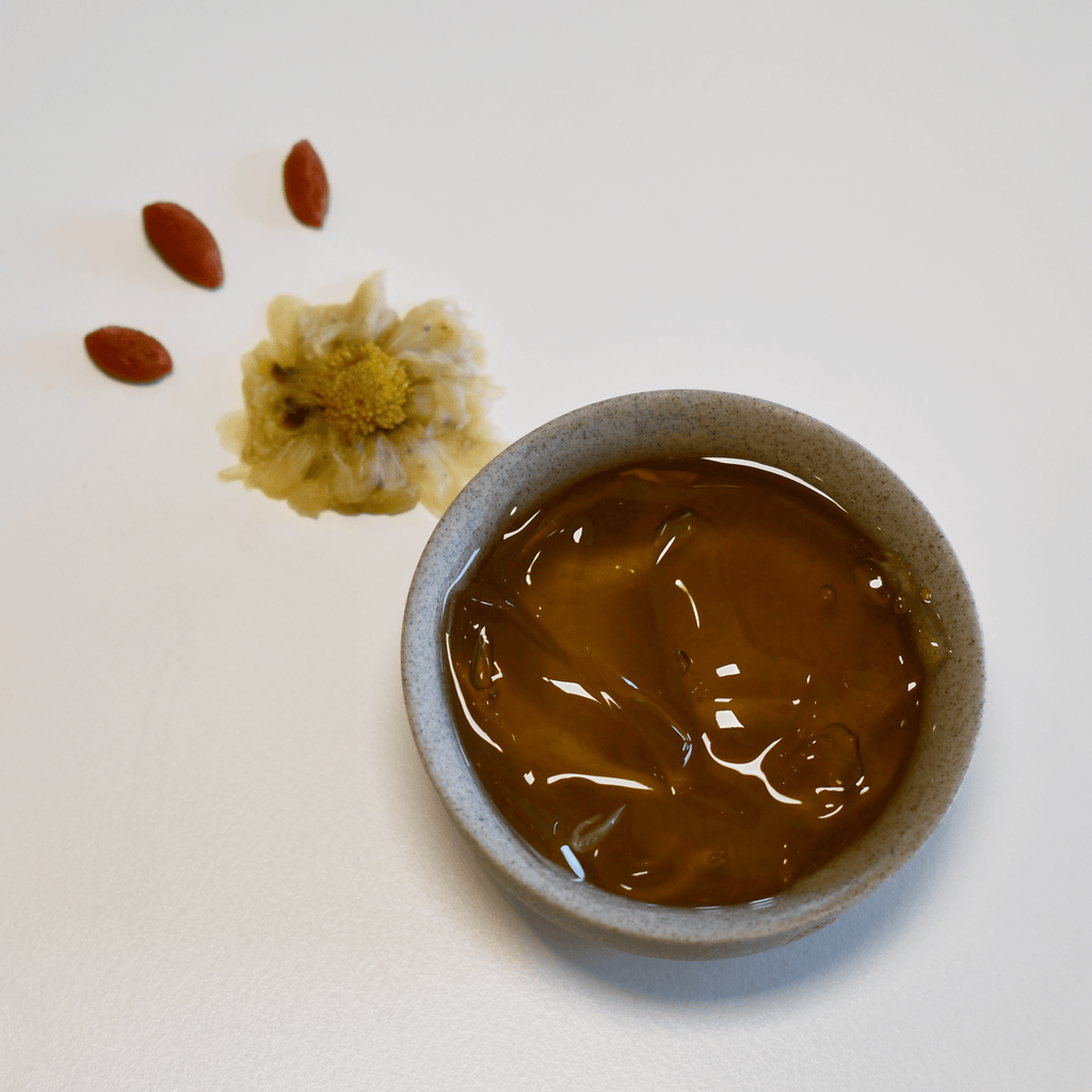 Soft, light, and floral. Made from chrysanthemum, goji berry, and konjac. Lightly sweetened.